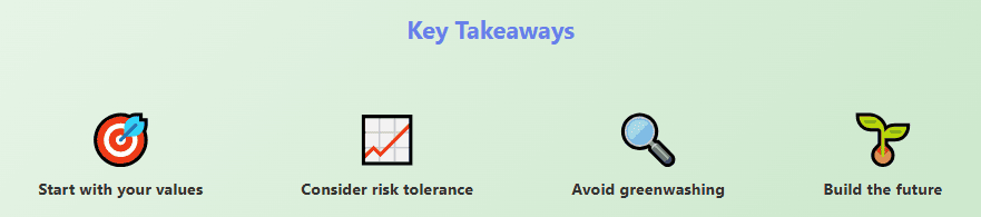 For instance, you might carve out 5%-7% of your equity allocation for a dedicated ESG fund, while keeping the rest of your portfolio unchanged. This way, you can keep your overall portfolio and still include sustainable investing as a part of your broader investment approach.
