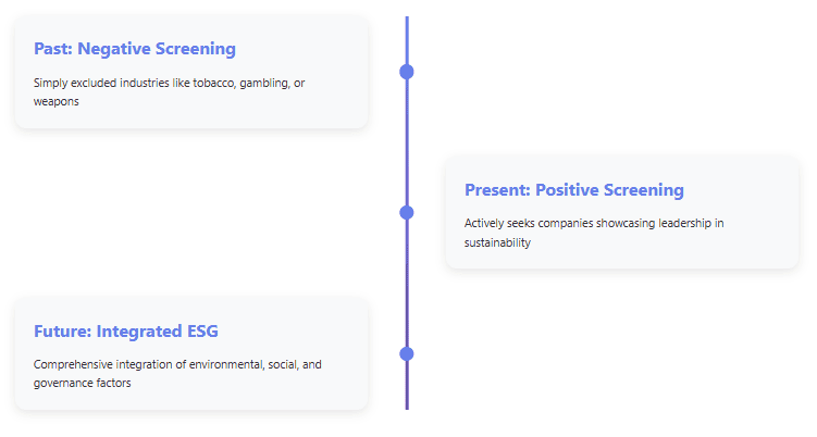 Socially responsible investing initially applied ethical or values-based screens to investment decisions. The original "negative screening" simply excluded industries like tobacco, gambling, or weapons. It still exists, but today's SRI goes much deeper. Positive screening actively seeks companies that showcase leadership in sustainability.