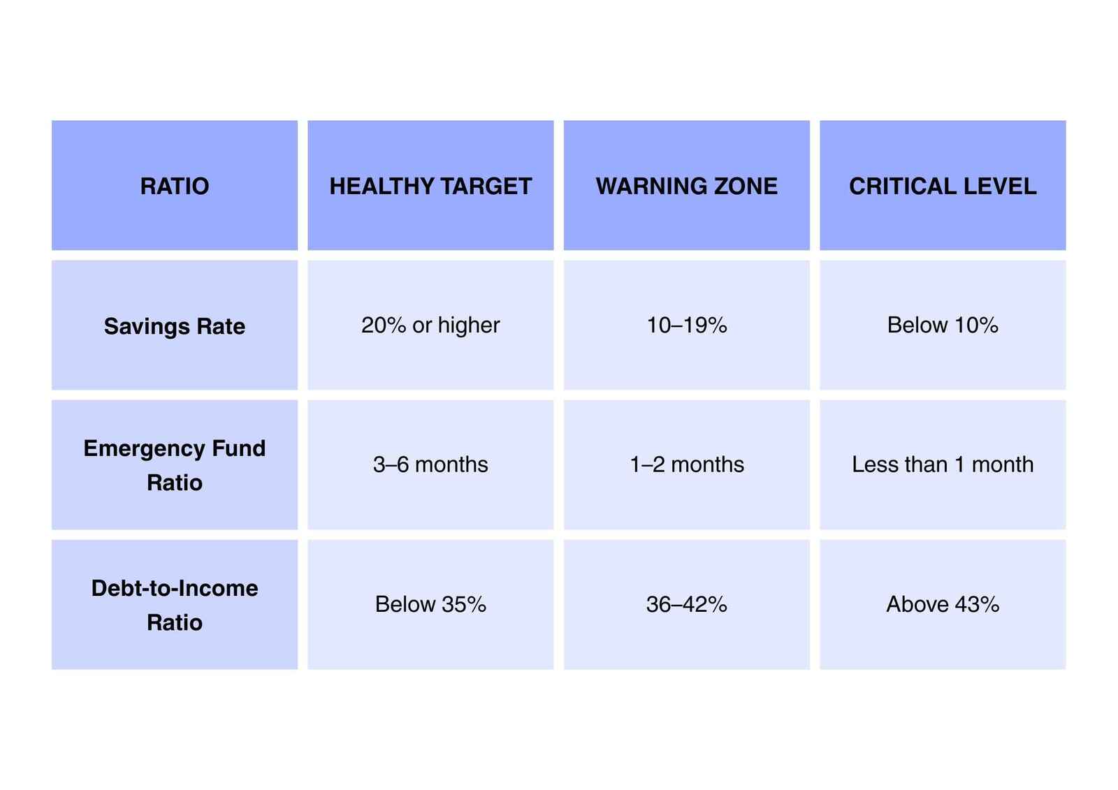 Among numerous indicators, three financial ratios stand out as essential tools for evaluating your financial health: the Savings Rate, the Emergency Fund Ratio, and the Debt-to-Income Ratio. These ratios provide a simple way to assess your financial stability and independence. Let’s get into the details.